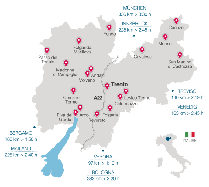 Freuen Sie sich über neu empfundenes Wohlbefinden und Ausgeglichenheit bei einem Spaziergang in den Bergen, entspannenden Momenten im Schnee oder einem spritzigen Glas Trentodoc. Das ist der Reichtum des Trentino: eine Mischung aus Natur, Kultur und Tradition, im Herzen der italienischen Alpen, eingebettet zwischen blauem Himmel und den majestätischen Dolomiten, UNESCO-Welterbe.