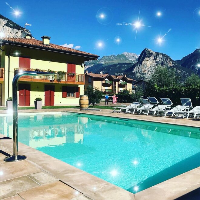 Agritur Ai Masi is situated a few steps from Lake Garda, in Trentino, in the Valley of Lakes. Our family atmosphere and professional staff will be at your disposal to make your stay pleasant in a very quiet area, ideal for a romantic holiday in complete relaxation in harmony with nature, and enjoy the beauties of nature. Outside, a large green area, playground for children. We have large indoor and outdoor parking. To start your day we offer a full breakfast buffet, prepared with special attention to the authenticity of organic products and integrated, typical of Trentino. We also took into consideration those who want to take advantage of an agreement with structures typical local pizzerias and restaurants. It 'a great place to stay, ideal for children, for those who want to discover and appreciate the natural beauty of the Valley of Lakes, such as moraines and lakes Sarca Toblino, Santa Massenza Lagolo, Cavedine, Garda. We await your arrival!