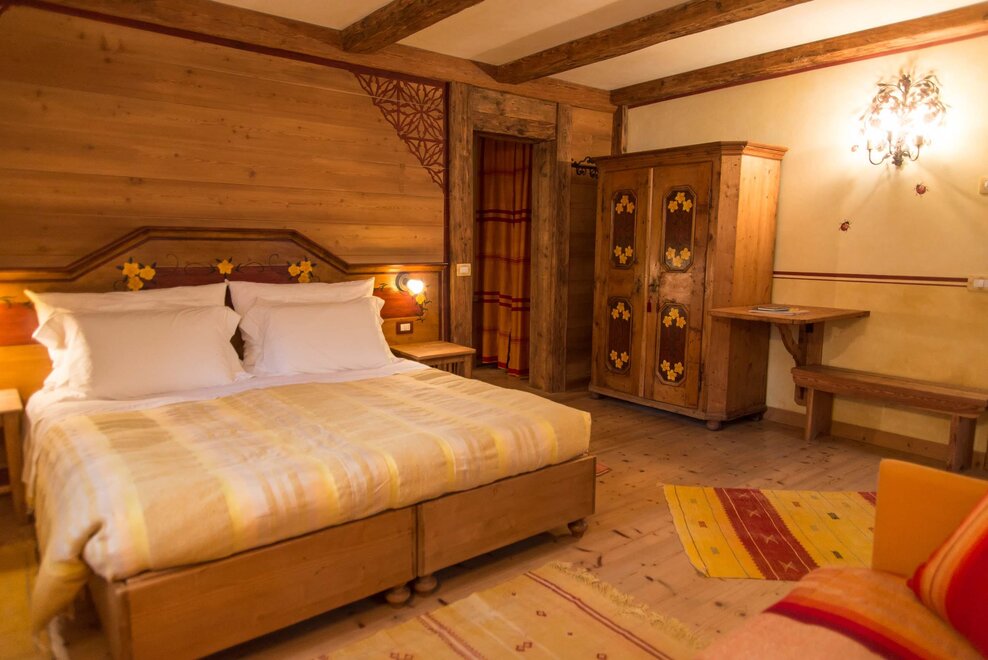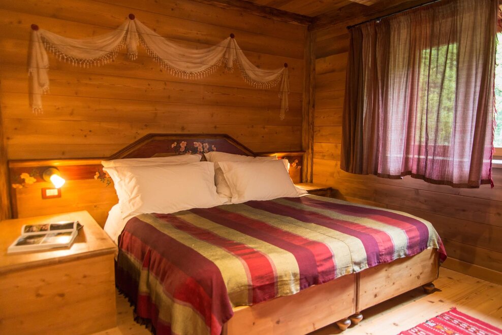 Our seven rooms are a true example of refinement and strong sensory perceptions, secret corners for long needed rest where you will be able to enjoy the sounds of the mountains and the scent of wood. In Baite di Pra, each room has been carefully personalised so as to offer you a welcoming, warm and refined stay in Trentino. Each room has been furnished with natural wood furniture and are all provided with heating, TV and en-suite. A hydroelectric junction box is currently providing energy, as a power line has yet to be set up. Every room is dedicated to a different rainbow colour and it is furnished following those shades so as to offer you natural rest during your holiday in the mountains of Trentino. Warm and welcoming spaces, where you can let yourself experience the real contact with genuineness…a journey of the senses for your discovery of the exclusive holiday The cot for infant 0-2 years old can be placed in every room.