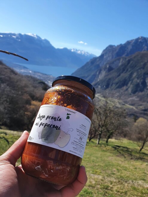The Calvola farm will not only charm you with its good homestyle food but also its fantastic panoramic view on the mountains and lake Garda.