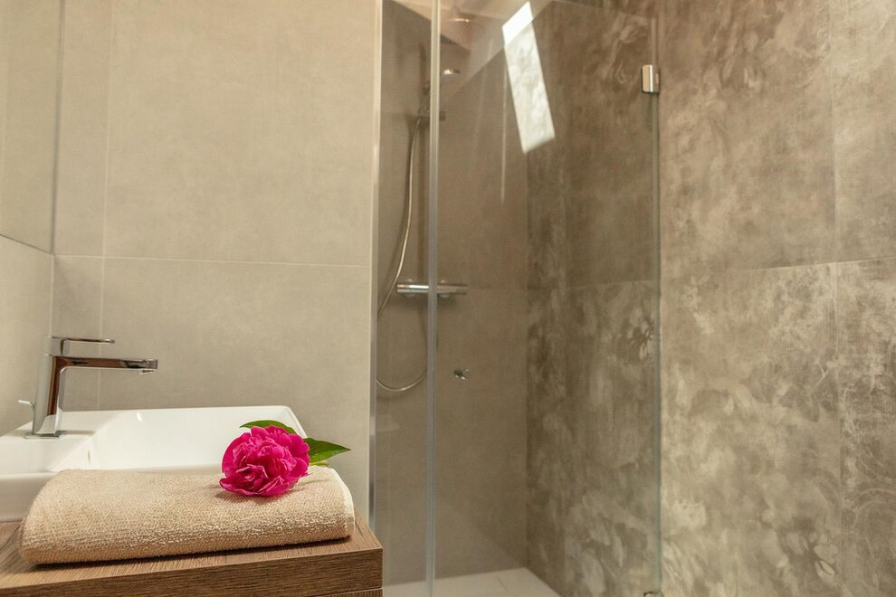 Triple attic room with private bathroom (26 sqm) for 3/2 people. The rooms are furnished in a modern, wooden style and are equipped with desk, safe, fridge bar, TV, free Wi - fi, hairdryer, air conditioning/heating.