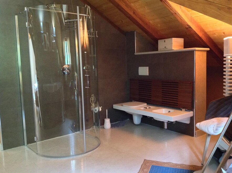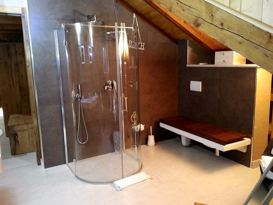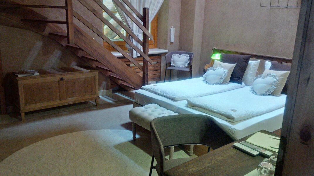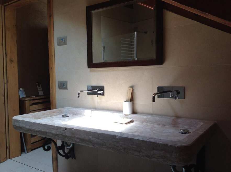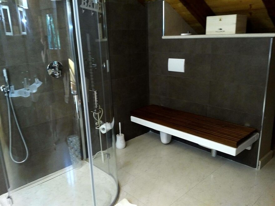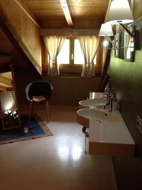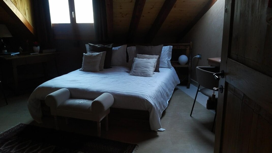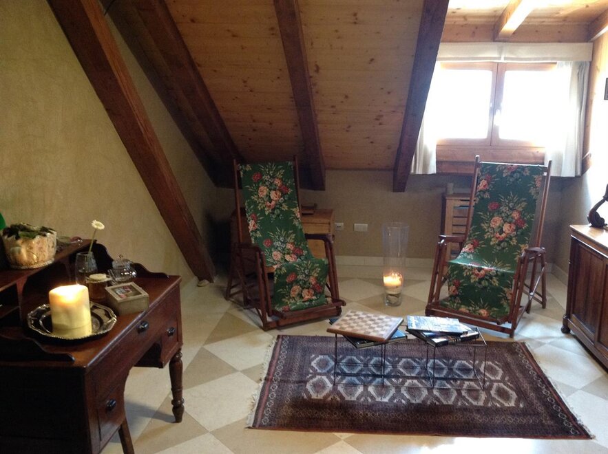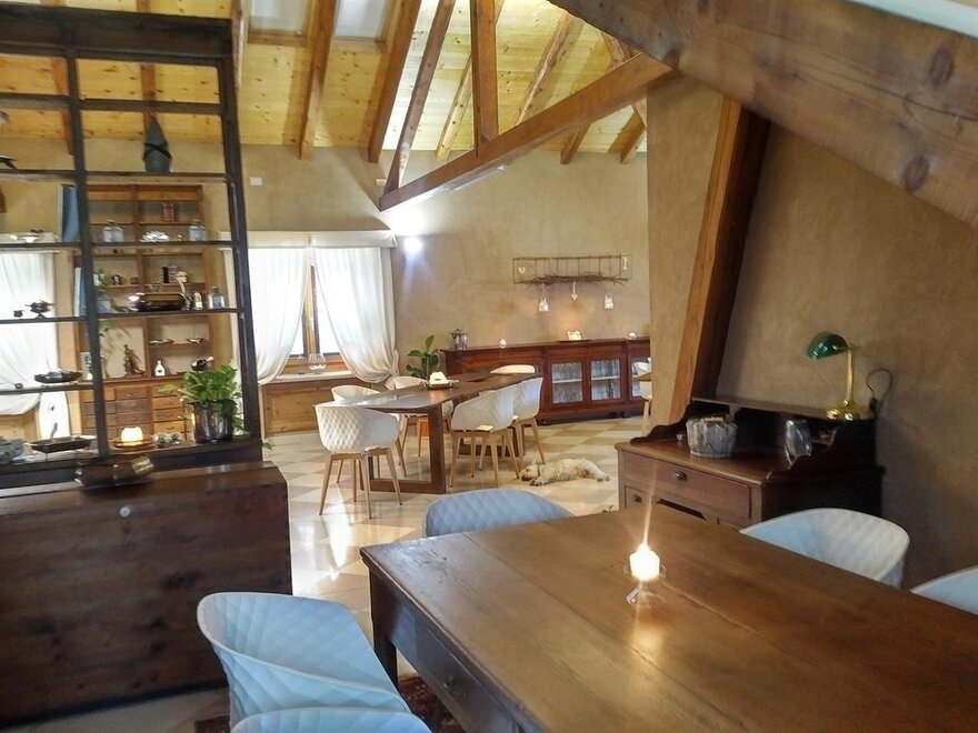 The Marzemino room is perfect for two people but also for three, has a beautiful and comfortable sofa bed. There are two suggestive windows in the roof and the bathroom, also a window in the roof, has a stone sink that once stood in the farmhouse that houses the farm. Marzemino is the name of the typical wine of our valley, Vallagarina. The walls are all built with clay. you will find the radio in the room and in the room, air conditioning, WiFi, cookies of welcome and handmade furniture with the wood of the old farm.