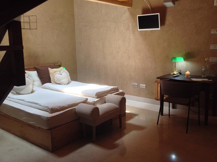 This room is named after one of our organic wines, cabernet sauvigno, franc, merlot and syrah. The room is ideal for two people, in addition to the windows in the roof both in the room and in the bathroom, has a segwaying dormer near the bed. The walls are all built with clay. you will find the radio in the room and in the bgano, air conditioning, WiFi, cookies of welcome and handmade furniture with the wood of the old farm ..
