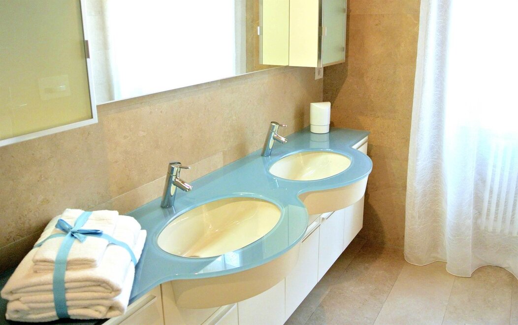 Double bedroom with queen-size bed and large wardrobe. Equipped kitchen with dishes, fridge, microwave, toaster, electric kettle, coffee machine with caps included. In the living room there is a standard double sofa bed, flat screen TV with satellite channels. Private bathroom with double sink, washing machine, toilet, bidet, large shower cabin.
