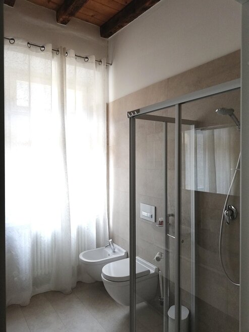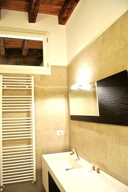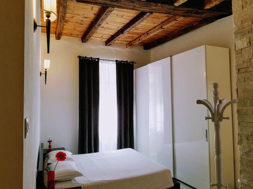 40 sqm apartment, on the second floor of a historic building 50 meters from the central square. Marble floor and ceiling with original wooden beams from the 1500s.