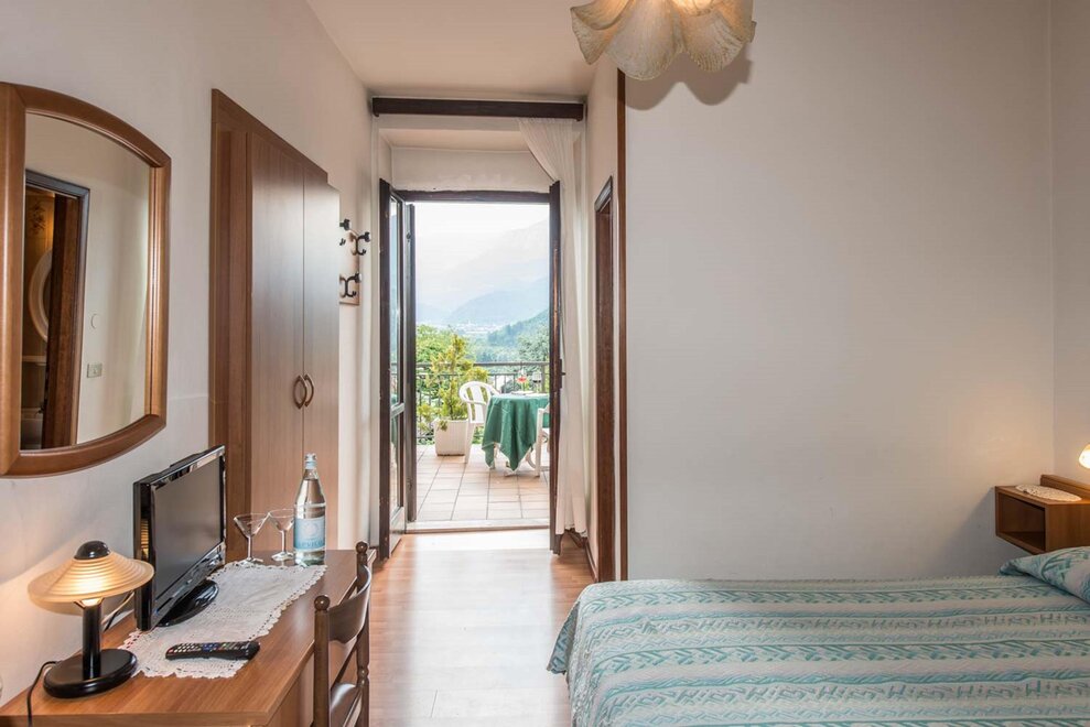 The Antica Rosa Hotel is one of the oldest structures dedicated to hospitality in Levico Terme. It is recalled as far back as the end of the 1800`s and it is not to be excluded that it is even older. Initial information reports that the Antica Rosa was a "trattoria" with a few guest rooms. During the world conflicts it was used by soldiers and officials and then slowly turned into the hotel it is today. The Moschen family have run the Hotel since 1972. The original structure had about twenty rooms and can be recognized still today, by the blue facade. The adjacent building was bought 10 years later, in 1982, and 22 extra rooms were created, making the Hotel even more comfortable. More than a century of history, passionately dedicated to our work. This is our pride and joy that encourages us to continue day after day, looking forward to the future but always keeping in mind the hospitality that has been passed down to our family through the centuries. The hotel guarantees a peaceful stay in very welcoming and comfortable rooms, flavoursome and healthy food, just like at home; a splendid terrace for relaxing in the afternoons or for spending the evenings in delightful company whilst enjoying the impressive lake view and sipping cool drinks from the Hotel bar.