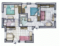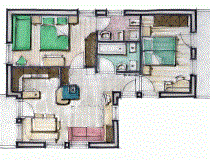 The apartments are of various sizes and configurations, suitable for from two to six people.