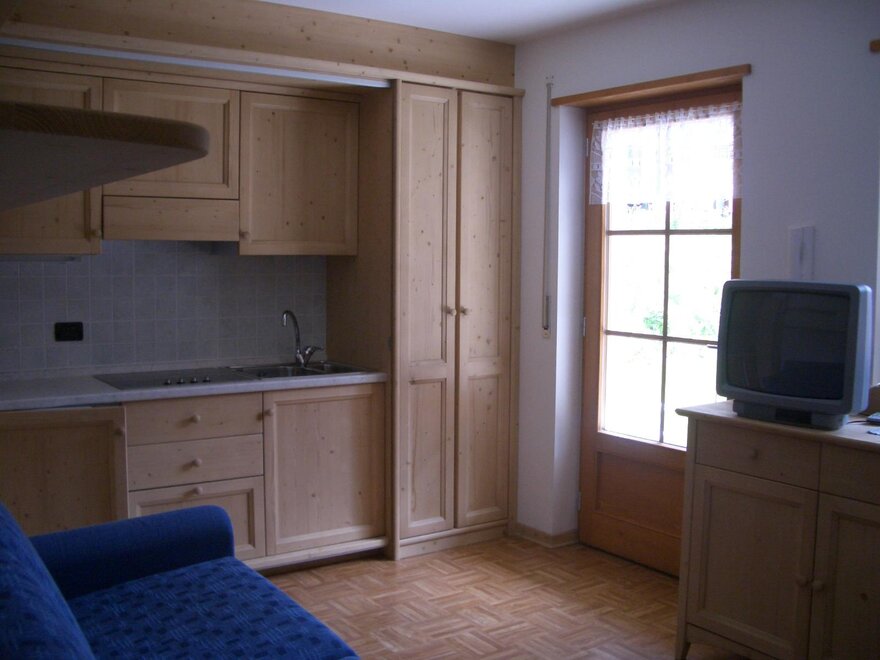 Living room with historical wooden coating (traditionally known as “stube”), kitchenette with dishwasher and microwave oven, bathroom with shower and bathroom with tub. Wi-Fi, Satellite TV, independent floor heating. Available laundry room.