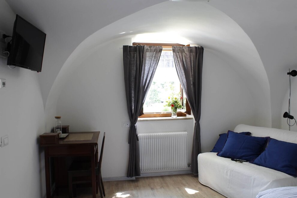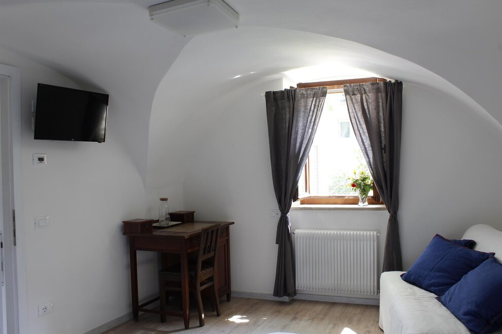 This is a double bedroom (with the possibility to add an extra bed) fully equipped with its own thermostat and TV. The bathroom is private (large shower, no bidet).