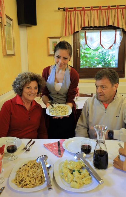 The Rifugio Brigata Lupi di Toscana lies in the relaxing verdant setting of the Altopiano di Boniprati in the Valle del Chiese, and is dedicated to the soldiers who fought heroically in the Giudicarie valleys during the Great War. The refuge is owned by the Scaia family, who built the current structure out of a wooden chalet. Children can have fun in the playground while gourmets can enjoy a plate of polenta carbonera (typical to this area) and blueberry or “radic de l’ors” (wild radicchio) risotto. Open Every day from early May to early November In winter from Christmas to 6 January Open on weekends all year round Before leaving for your hike, always contact the manager to verify the actual opening of the mountain hut Walks The Altopiano di Boniprati is the perfect place for walking enthusiasts and mushroom gatherers (permit required). The nearby Malga Table and the Maress, Clavet and Clef malgas (summer pastures) can be reached along an easy forest track. At the latter a small military cemetery commemorates the fallen of the Great War. Cima Pissola (45 minutes from Malga Table, E) rewards the ascent with its views, but is also recommended for anyone interested in the events of the Great War and (in winter) for ski mountaineers and snowshoers.