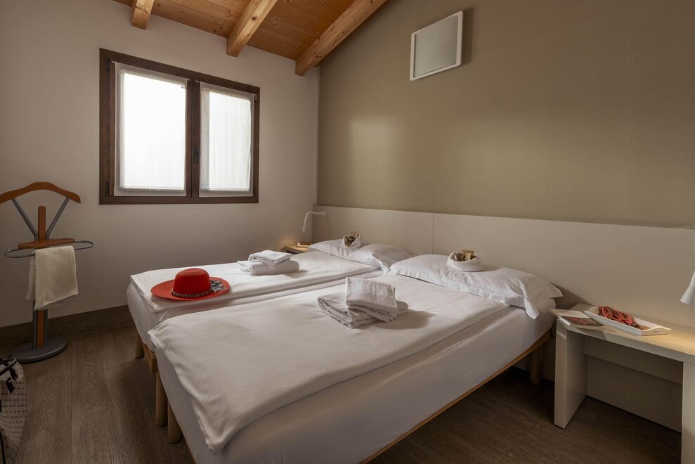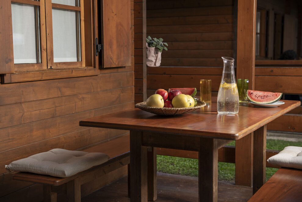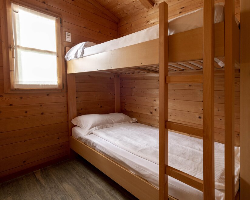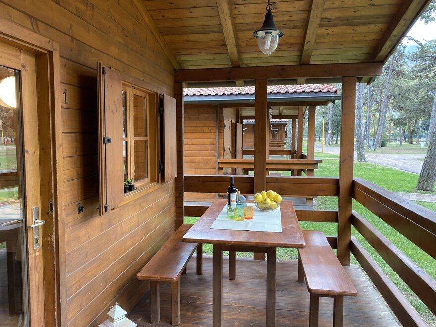 You won’t have to give up comfort by choosing our beautiful wooden chalets “Colodri”, spacious and comfortable two-bedroom chalets with private bathroom that can accommodate up to six people. Inside, you will find an equipped kitchen corner (fridge, microwave, hob, dishes and kettle), bed linen, towels, blankets, heating, air conditioning, safe and television with satellite channels. Each chalet will provide you with a magical holiday, also thanks to the large covered veranda with table and chairs where you can spend time with family or friends. Finally, there is a private parking spot next to the chalet. Pets are allowed.