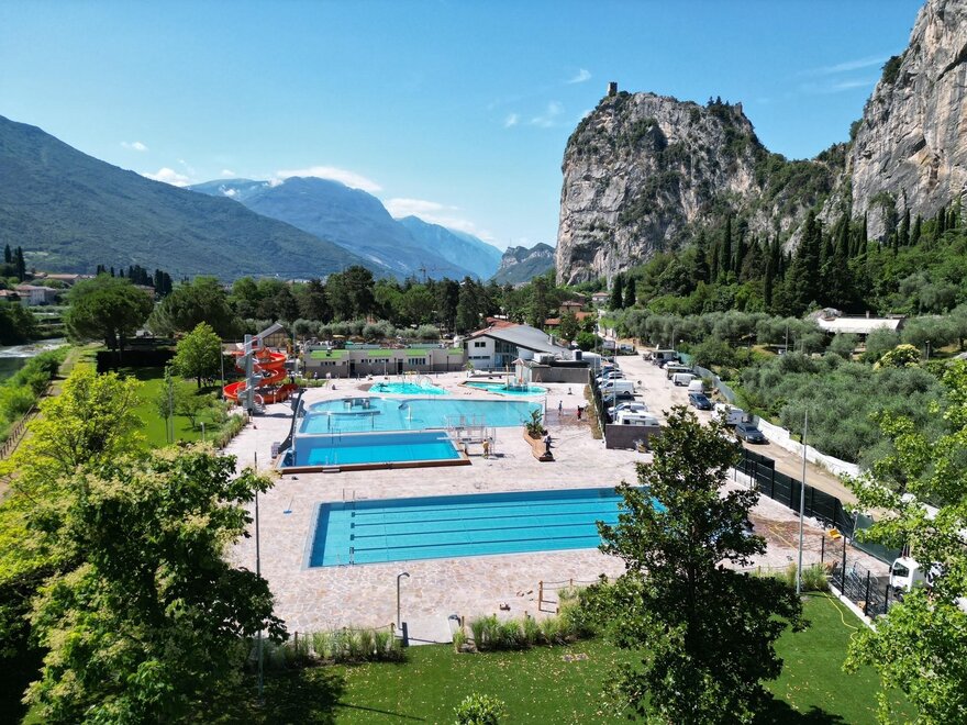 The camping lays on the banks of the Sarca river just below Mount Colodri, only 5 km from Garda Lake, 15 km from the highway exit “Rovereto Sud”, around 40 km south of Trento and 70 km from Verona.