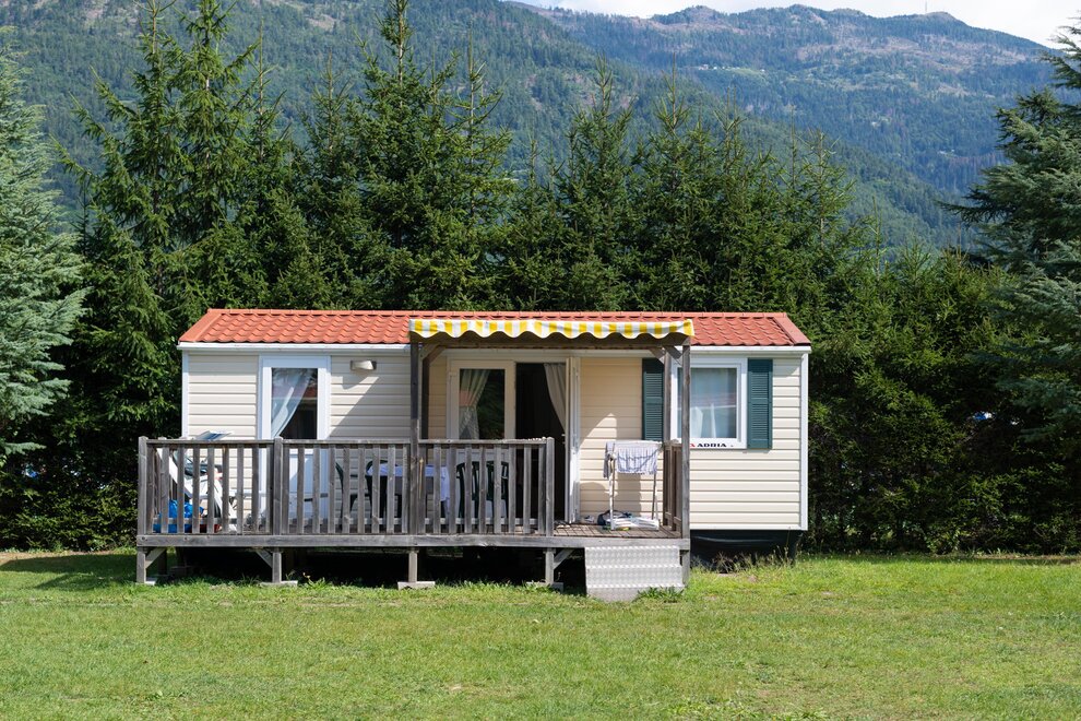On Campsite Due Laghi we also offer comfortable and spacious maxicaravans if you haven’t got caravans nor tents. All our mobilehomes (up to 24 sqm) are modern and fully equipped and sleep up to six. You’ll find a doublebed room, twinroom, toilet with wc, shower and sink, kitchen, livingroom with sofabed and veranda.