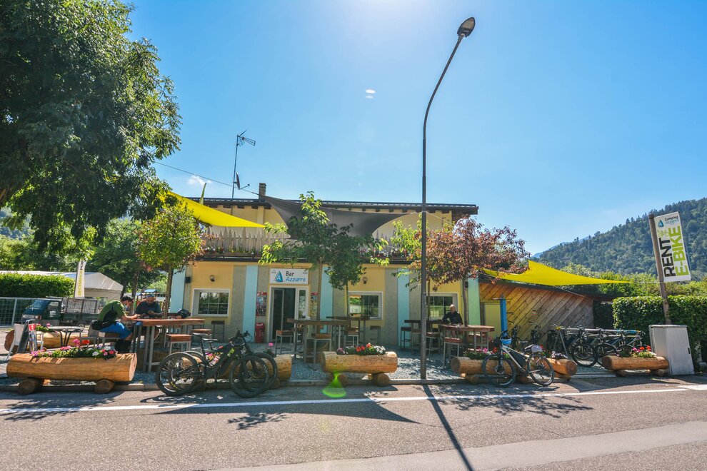 Situated on the shores of Lake Ledro in Pieve di Ledro, Alzer is the name of the street. Ideal resort for people who want to relax after a very stressful winter or to run away from the cities pollution; 18.000 mq of green and shady spaces are waiting for you. There you're in touch with the lake and the mountains at the same time. Do you like to go fishing, mountainbiking or sport in general? Do you like to go for a walk in the woods or just have a rest? Our Camping Azzurro is perfect for you! And it' only 300 m from the village centre. Beautiful, shaded, wide Camping spaces with electric hook-ups, bathrooms with warm water, laundry, tumble dryer, ironing room, bar for snacks and breakfasts; all in a family, warm and professional background. Playground and swimming pool with solarium for the very young guests. Excellent starting-point for excursions in the mountains, walking and water sports. Moreover: soccer field at 100 m, tennis courts at 300m , restaurants and pizzerias at 200 m, post office, banks and pharmacy at 300 m , canyoning at 10 minutes.