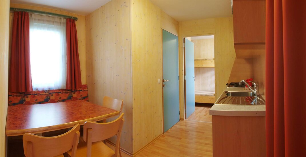 Our fifteen mobile homes were put up in 2006. They offer cosy accommodation. Each unit has 24 m² of floor space and has been designed to accommodate comfortably up to 5 people – which means that this type of accommodation is especially interesting for families or groups of friends.