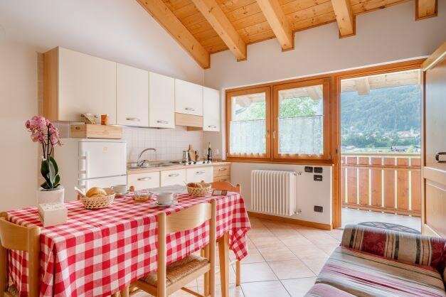 It's set in the centre of the Adamello-Brenta Nature Park, 45 km from Trento and Lake Garda and 10 km from Pinzolo. In only a few minutes you can get to Madonna di Campiglio, with its ski slopes in winter and the many walks and excursions in summer, the Comano Spas and spa centre and the Caderzone Spas. You will be able to relax and enjoy pleasant walks and excursions in the Brenta Group and on the Adamello-Presanella glaciers 3500 m above sea level, or try the thrill of paragliding or hang-gliding. A few minutes away in the car there are tennis courts, indoor swimming pool, ice rink, gym, horse riding and golf courses. In winter Pinzolo and Madonna di Campiglio offer over 120 km of slopes as well as numerous cross-country ski circuits. Services include a mini-market, bowls and playgrounds for children, a restaurant, bar and new swimming pool. There is also the opportunity to go fishing in the nearby stream.