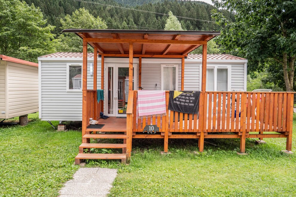 Our mobile homes are perfect for those who want spend an outdoor holiday, but without giving up the comforts .... The unit are 32sqm large and can accommodate up to 6 people with separate rooms. They are composed of a living room with TV and a fully equipped kitchenette, bathroom with shower box sink and toilet. At the entrance there is a comfortable wooden veranda of 2.50 m x 3.30 m that will let you enjoy your time outdoors. Furthermore you will be provided with the bed linen, tablecloth and dish rag, 2 towels per person and bath mat.