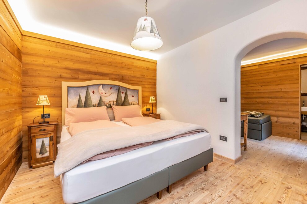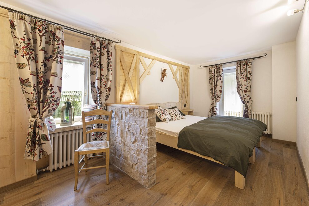 Newly renovated room, equipped with a double bed and a sofa bed, which turns into a bunk bed if necessary, thus adapting to the needs of a family or a group of friends. Private bathroom with shower and hairdryer. The local wood furniture and the natural larch flooring give a pleasant feeling of warmth. A large private wooden balcony is available. Features a private panoramic balcony. Surface starting from 23 square meters Our rooms lack the TV as we have chosen to give you a truly rejuvenating experience even for the mind. Indeed, in our rooms you will find a kit of games and activities to do together with your companion. Choose from different rooms: from standard to superior to dorms.