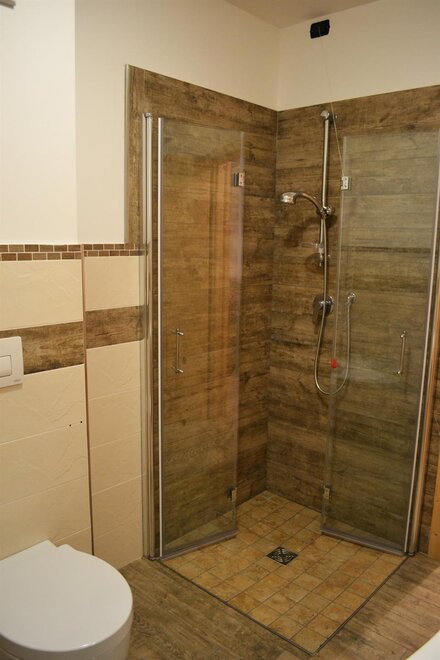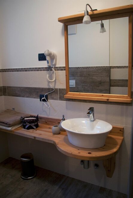 pampered by fir wood with its warm veins.The bathroom with window is equipped with towel warmer and hair dryer, large shower and bidet.