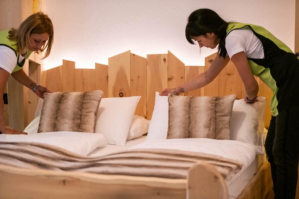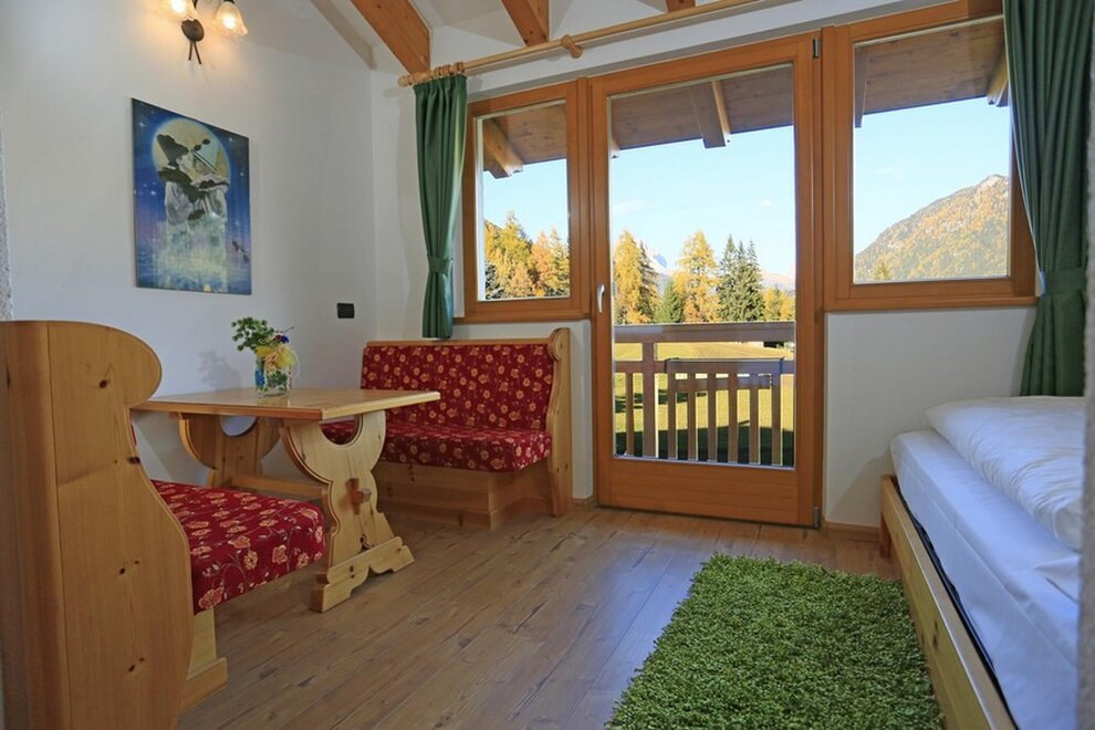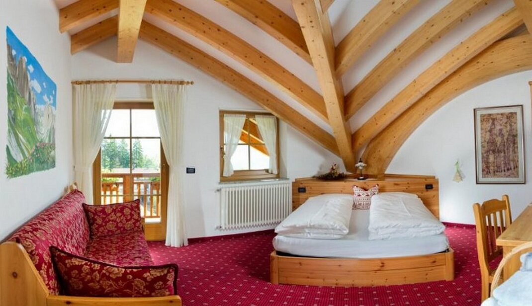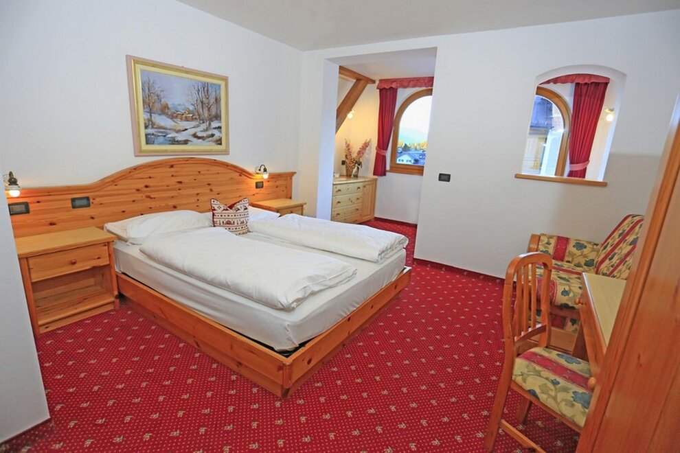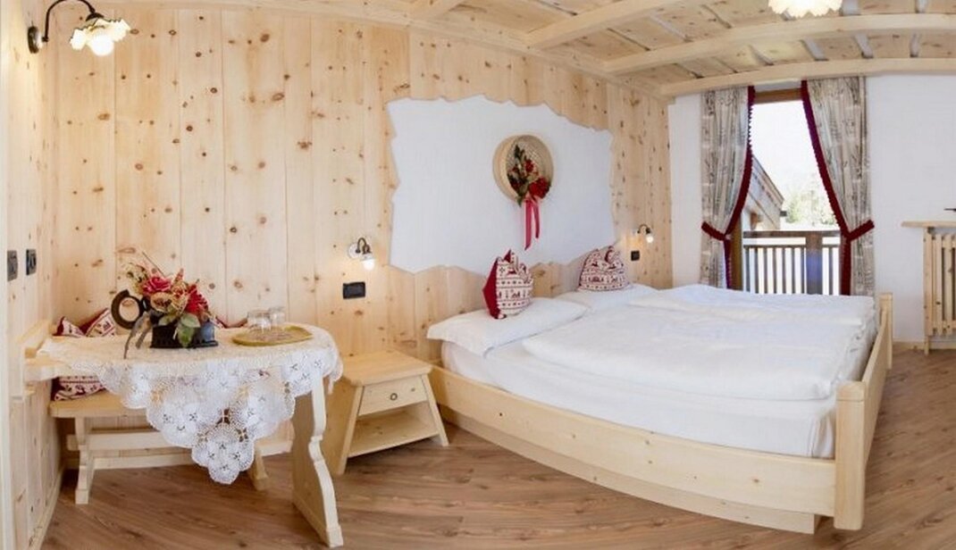 Standard Room No specific requirements? Why not book a Standard Room. A traditional double pine-furnished bedroom of 16 square meters , where you can experience the most authentic hospitality of the Fassa Valley. There is enough space for a 3rd bed. A word of advice: don’t delay, book now so you don’t miss out on a panoramic balcony room!