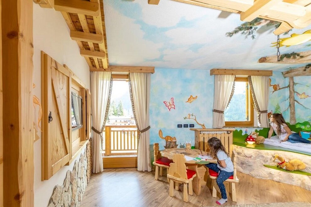 Sigolot Family Suite Do you need a lot of space? Try our new Sigolot Family Suite! A room of 30 square meters tastefully furnished in line with the mountain tradition of Dolomite hotels with: Double bed Living area Spacious bathroom (with shower or bath) Separate night area for children In this way your children will have their own space… where they can live their own fairytale in the forests of the mountains, together with Sigolot the gnome and his friends.