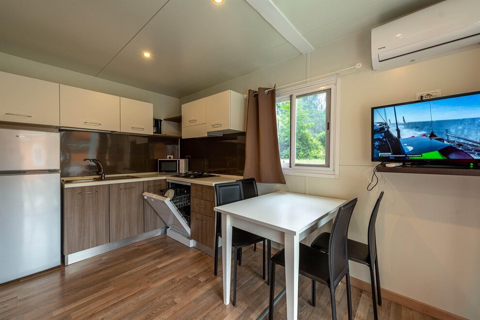 The mobile homes are family friendly and offer enough space for up to five people. The mobile homes are equipped with air conditioning, heating , dishes, pottery, glasses, cups, fridge and freezer, coffee machine, microwave, gas, blankets, pillows, clotheshorse , television35 sqm + terrace The space is alive and functional, and the quality furniture and appliances are fully also functional. The mobile homes are family friendly and offer enough space for up to five people. The mobile homes are equipped with air conditioning, heating , dishes, pottery, glasses, cups, fridge and freezer, coffee machine, microwave, gas, blankets, pillows, clotheshorse , television