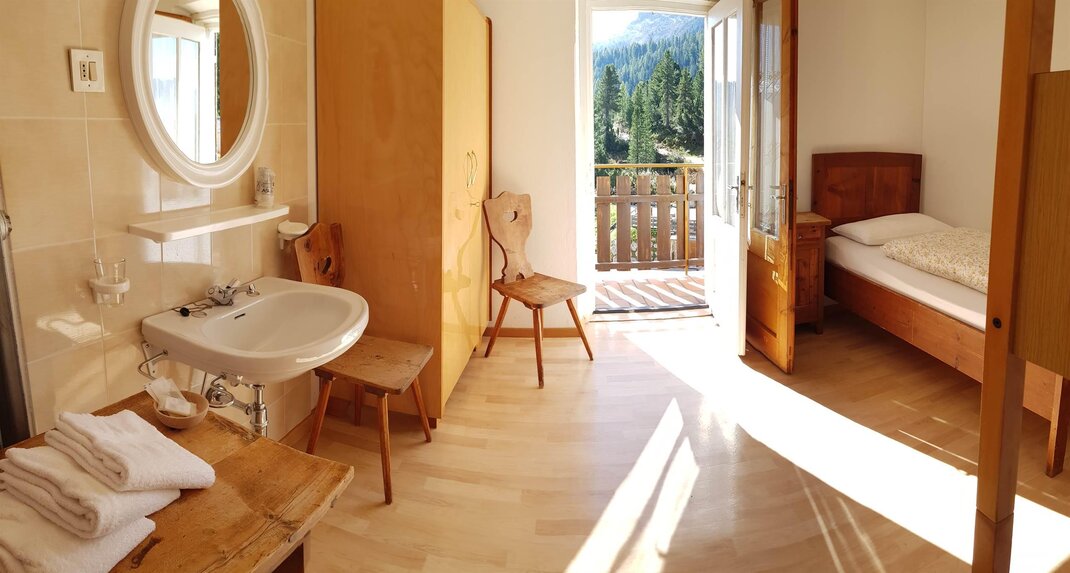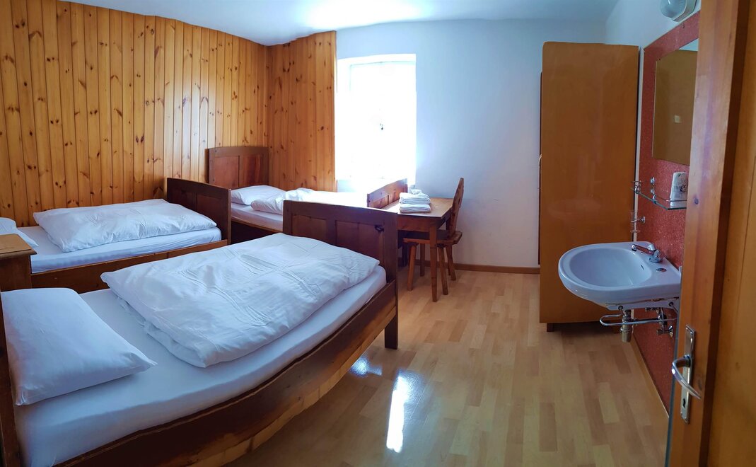 The small rooms in alpine style are equipped with simple but sufficient furniture to allow you to enjoy a unique holiday, whilst warm duvets ensure you may rest and prepare for a new and thrilling day.