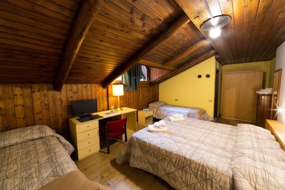 Hotel Gran Baita, is a fine, modern and comfortable establishment for a quiet mountain holiday. A typical, quaint hotel pampering its guests with a warm, cosy and comfortable service tailored to their needs. Traditionally family-run by its proprietors, it welcomes guests in a homely atmosphere where they will enjoy true hospitality. We are glad to welcome you as a guest and a friend. A lot of beds, all rooms with private bath, direct-line telephone, colour TV, Fitness room, sauna, ski room, private car park, indoor parking, automatic lift, ski bus. Breakfast room, large living rooms, game room (green tables), billiard room. A choice cuisine and typical meals.