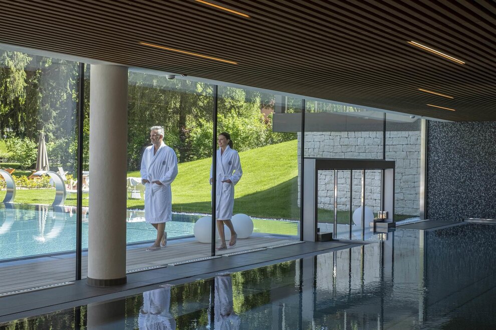 - Large outdoor and indoor swimming pool with thermal water, hydromassage beds and therapeutic waterfalls