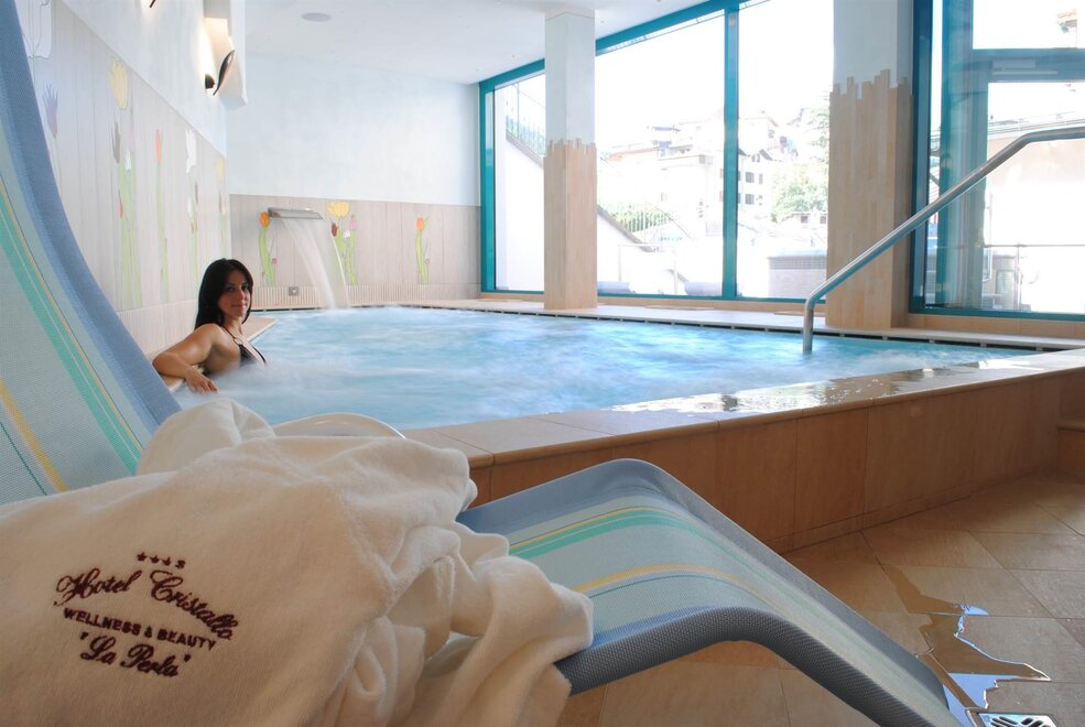 Like a balcony overlooking the Brenta Dolomites, the recently constructed Hotel Cristallo is situated in a central but quiet position During the Summery season we are very pleased to offer our welcome guests the ANDALO CARD, with which it will be possible to have free access to the several evenings organized by entertainers at the conference building and the indoor swimming pool. In addition, it offers discounts for the bus, minigolf, horse-riding, ski lifts and for many other activities at the Andalo sports centre. The Hotel is located opposite the Paganella ski lifts and this is greatly appreciated by the skiers who have no need to use their car and can ski right to the hotel. On this occasion, you will immediately have the opportunity to book some ski lessons, the skipass and to hire skis and boots. At the end of the evening the entertainer will present his weekly programme. The non-skiers can tour in the woods by foot or with the "ciaspole", while the romantics can enjoy the horse-drawn sledges. With the skipass you are entitled to free access to the swimming pool and to some reductions at the ice stadium. FITNESS After a hectic day on the slopes what can be more relaxing than spending a few hours in the sauna or Turkish bath? If you want to get a quick and lasting tan, you can book the sunbeds at any time of the day.