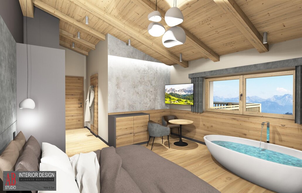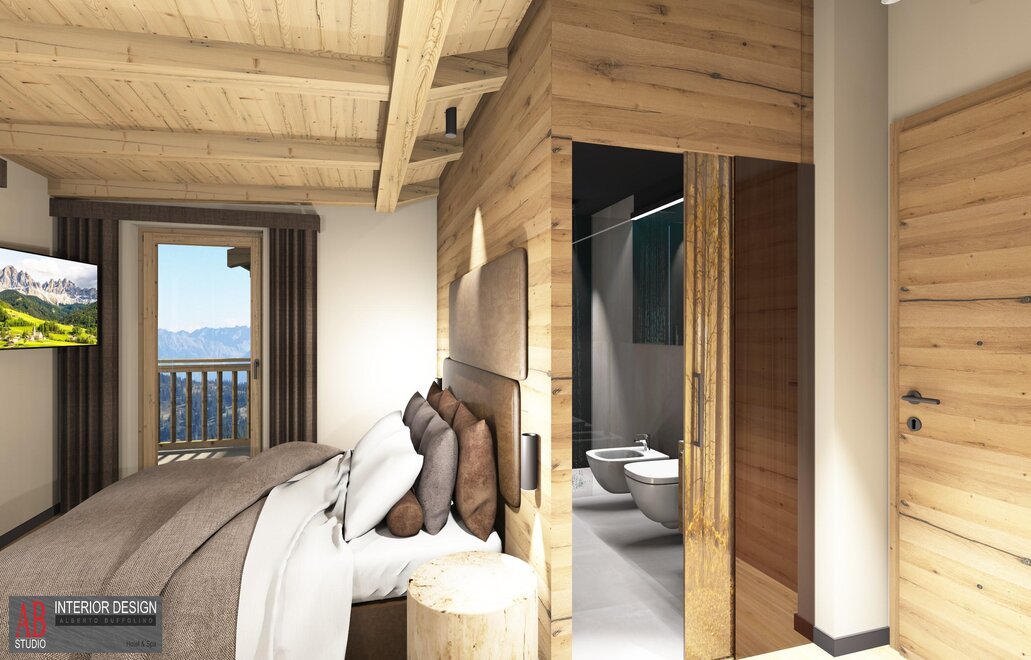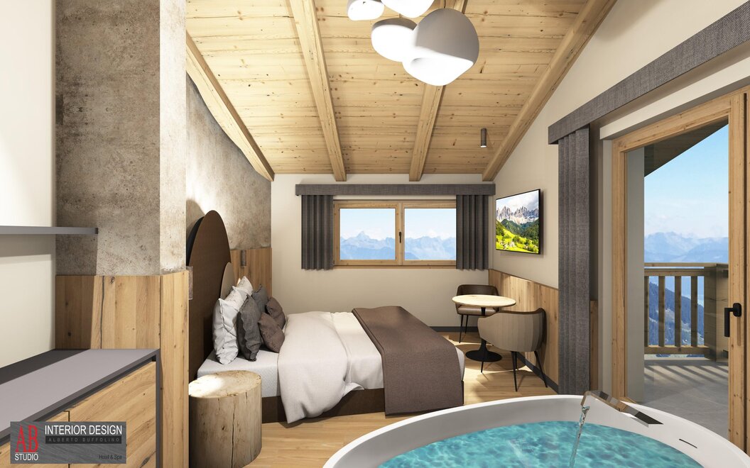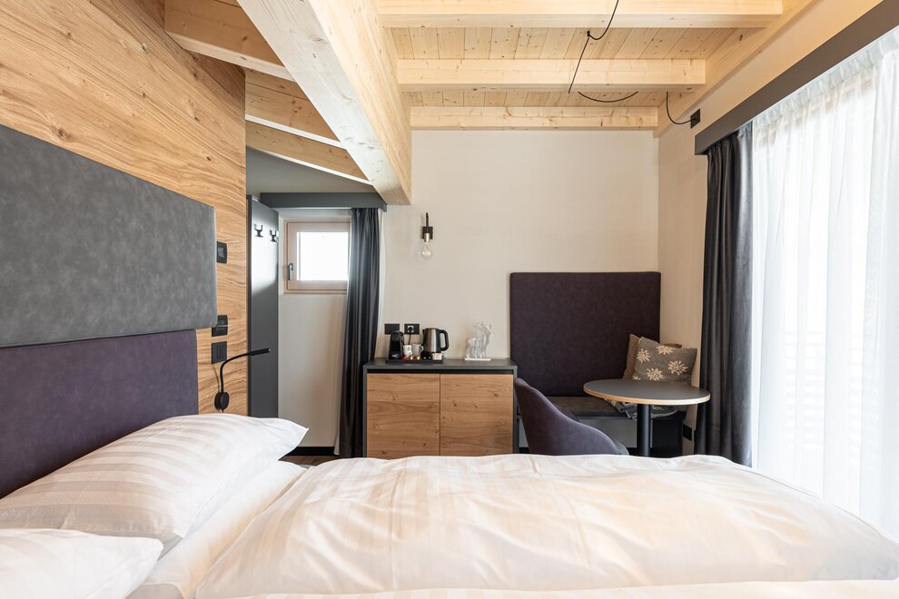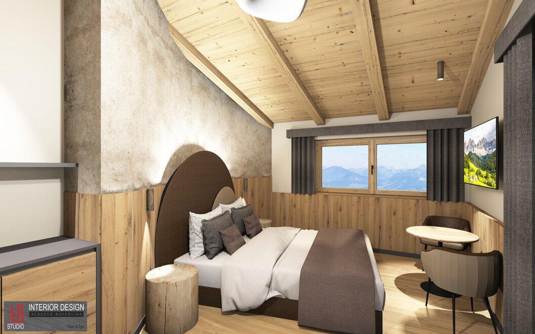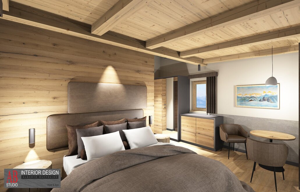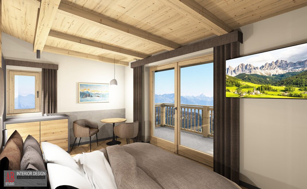 Superior Room Sasso Lungo with Oak furniture and a Dolomite view...
