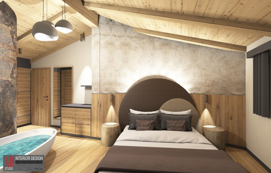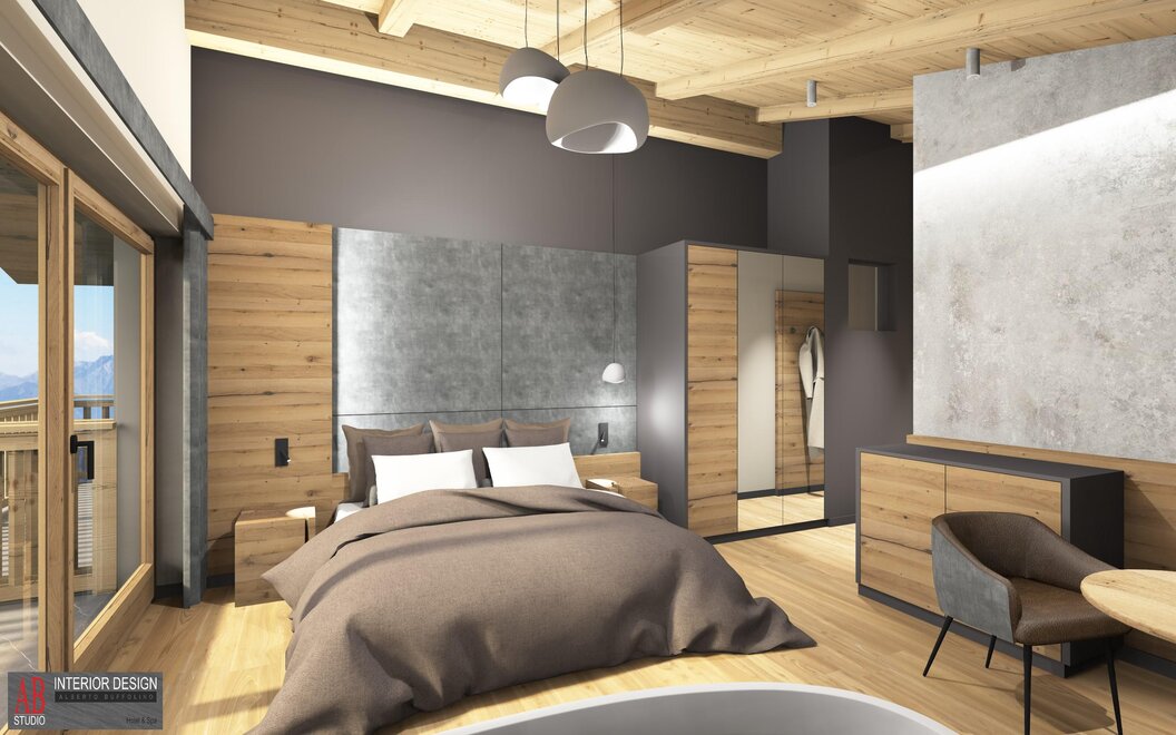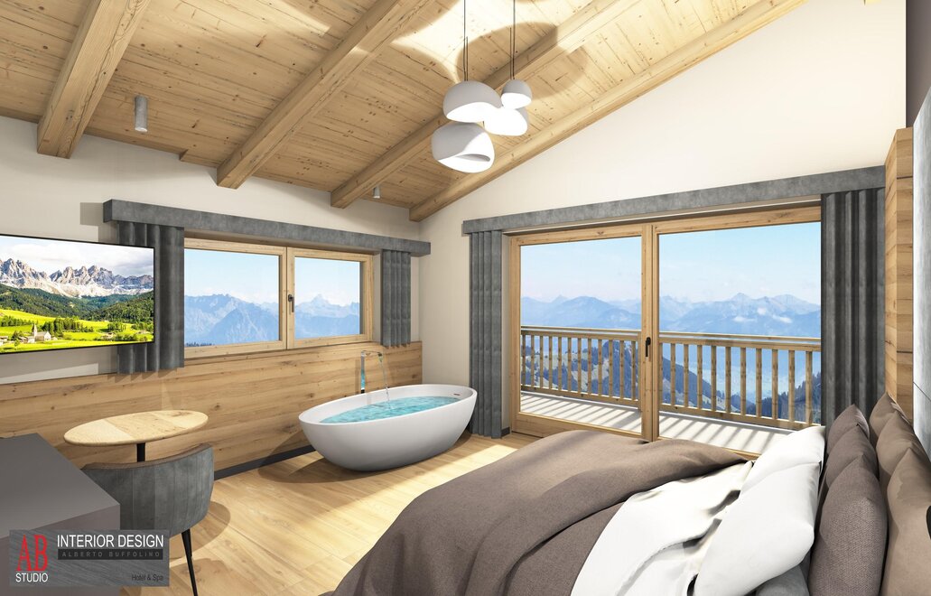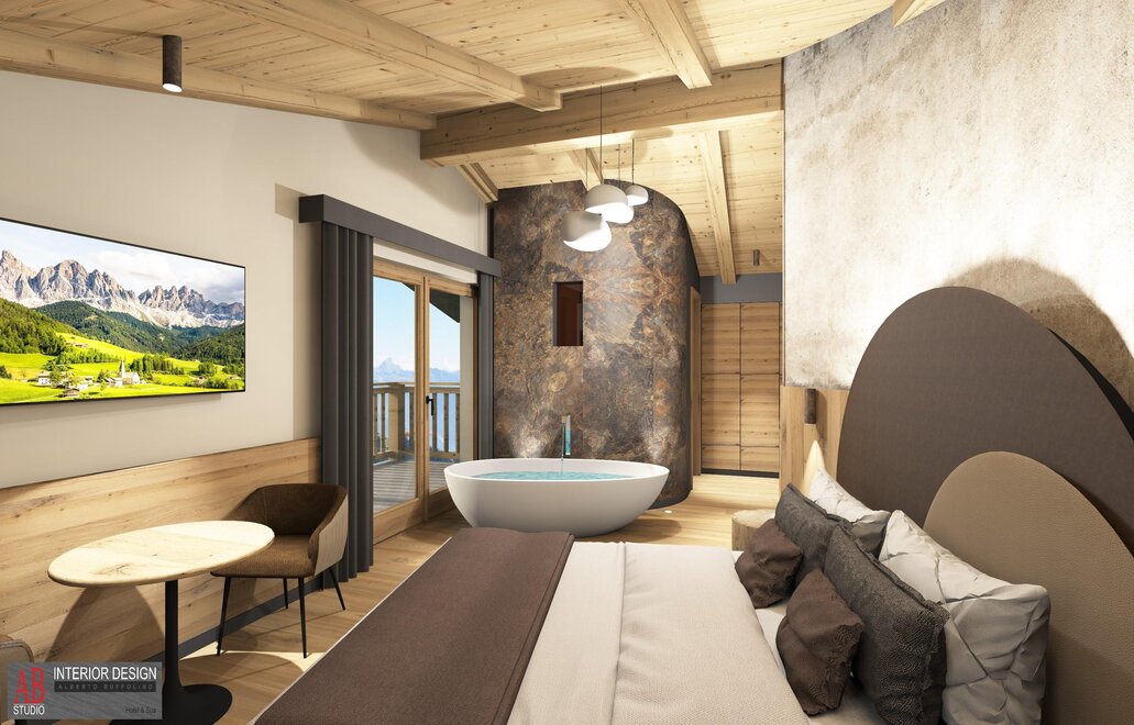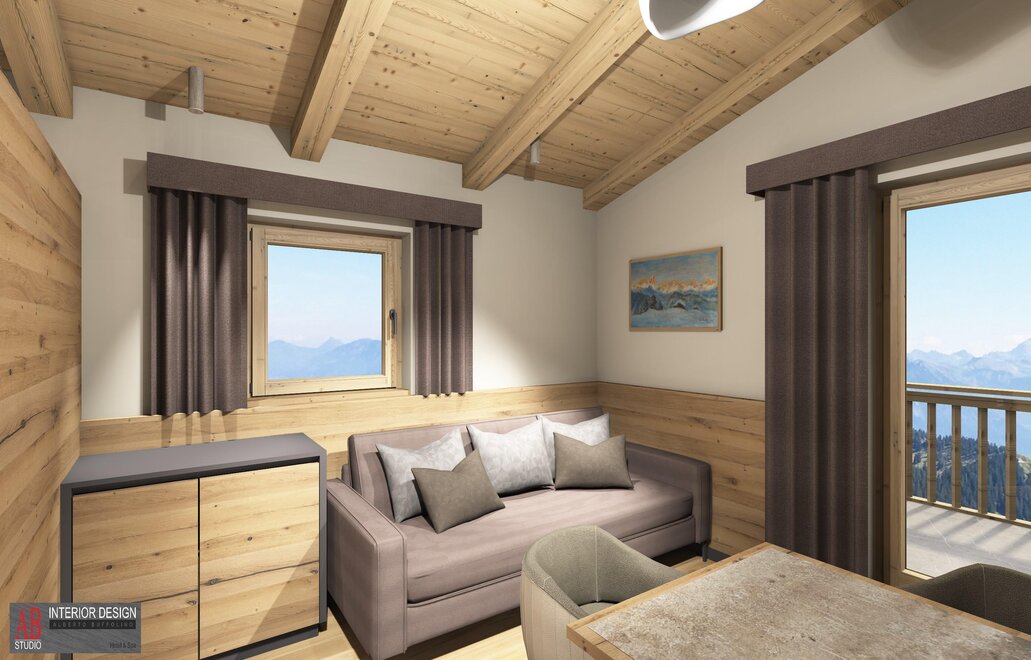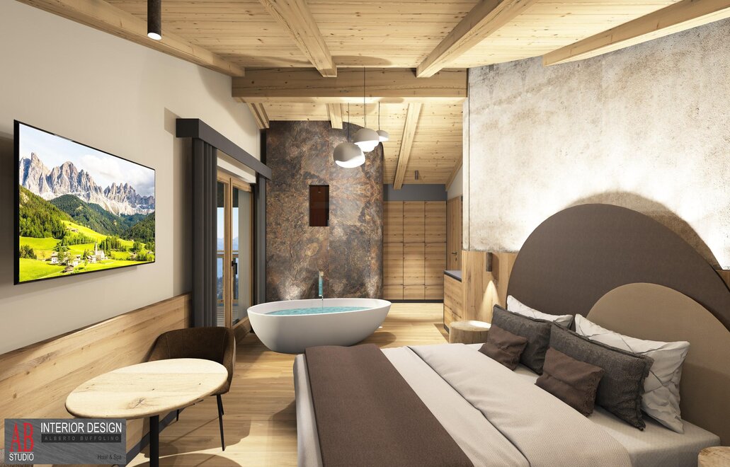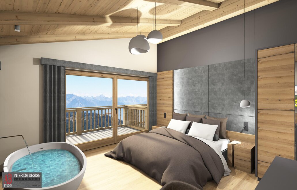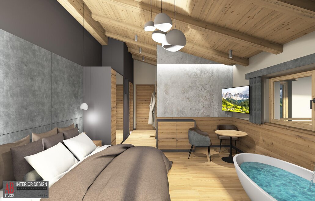 Superior Room Sasso Lungo with Oak furniture and a Dolomite view...