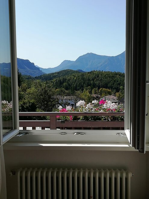 In the morning from the kitchen window you can see the sun rise from Costalta, then in the evening you can greet it when it sets behind the Bondone, right from the living room balcony. A large garden is attached to the house which guests will share with us and with our little Milly (small dog).