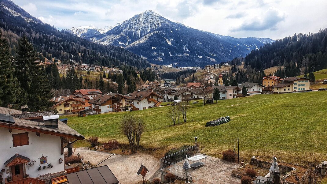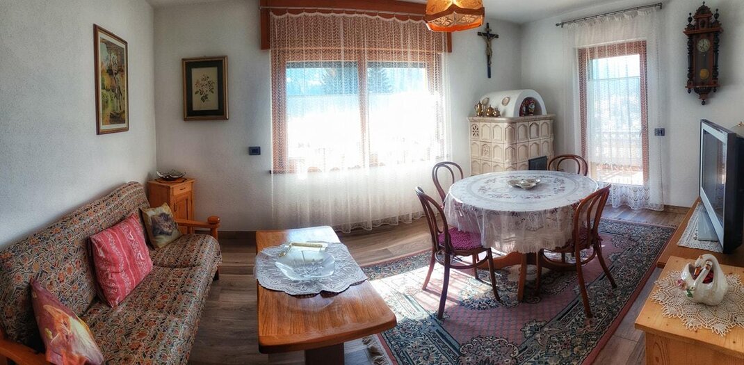 Located in Soraga di Fassa in the heart of the Unesco Dolomites in Val di Fassa, in a sunny and quiet area with large green spaces, away from traffic but a few minutes walk from the center of the village of Soraga and all services: