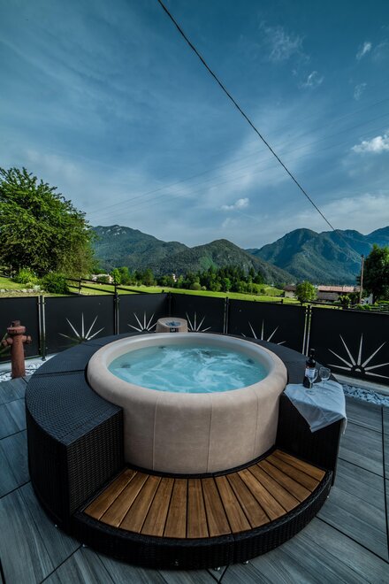The true magic of this place lies in the wellness area, featuring a sauna or bio-sauna and hot tubs that invite you to moments of pure relaxation. Recharge your energy in the relaxation room or enjoy a day outdoors engaging in mountain activities. Free loungers in the garden await you to sunbathe while your children have fun in a safe environment, with a crib, toddler bed, and high chair available at no extra cost.