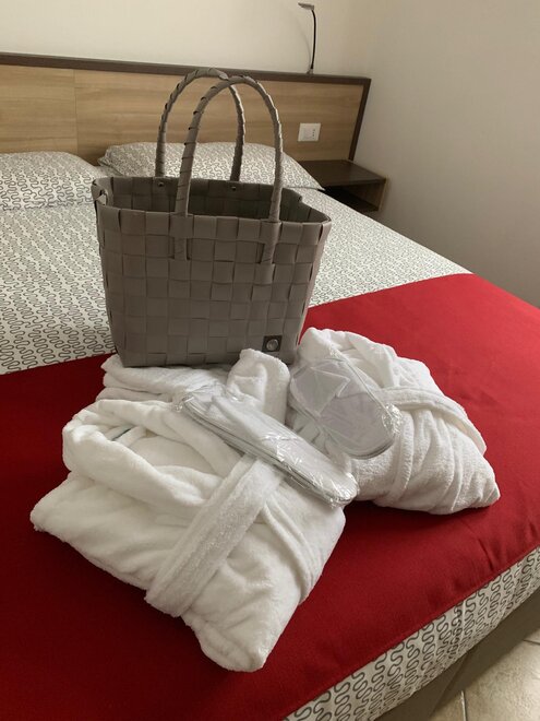 In the bathroom, there is a shower, toilet, bidet, hairdryer, a complete set of towels, and courtesy set; outdoor furniture includes a table, chairs, and deck chairs to enjoy our exquisite breakfast, or your lunch or dinner outdoors.