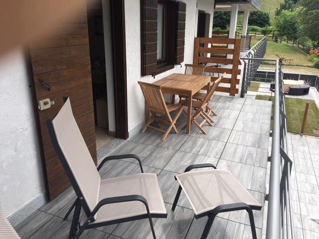 quiet room/apartment, bed linen available, refrigerators available, vent hood, satellite TV, CO detector, crockery and cutlery , refrigerator, electric stove, towels available, apartment without fitted carpet, separate bedroom/living room, microwave, tiled or marmor floor, non-smoking room/apt., dining room, dishes available, maximum no. of pets: 1, bedding, Wi-fi free of charge, linen provided , combination microwave, smoking room/apt., essentials (towels, bed linen, soap, toilet tissue), toilet laundry, terrace, dishwasher, kitchen, garden, anteroom, kitchenette, closet, toiletries, WiFi, foldaway bed, kitchen utensils, desk, hairdryer, bathrobe, freezer compartment, meadow