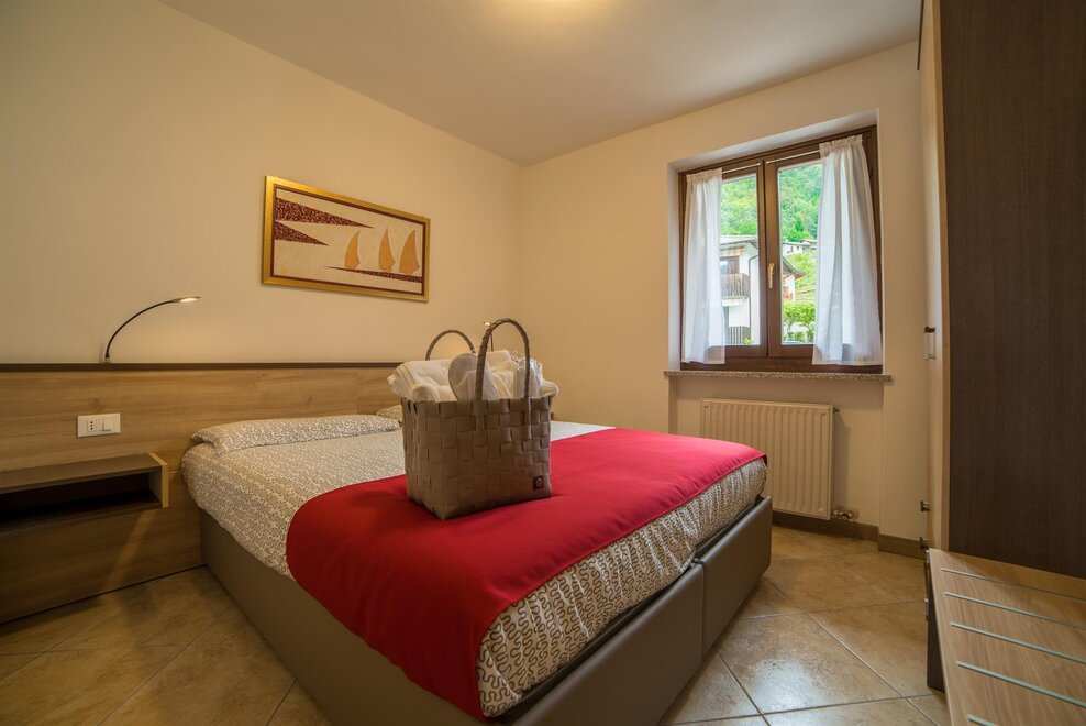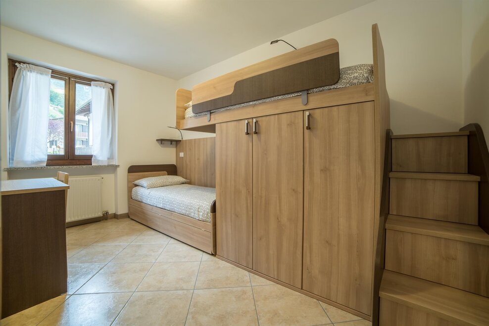 Renovated ground floor apartments with fenced terrace, all furnished in rustic Alpine style, bookable for 2 to 5 beds; bathroom with shower, toilet, bidet, hairdryer, complete set of towels and courtesy set, outdoor furniture with table, chairs and deckchairs to enjoy lunch and dinner outdoors. In the shared garden there is also a barbecue for excellent grilling. The living room is equipped with a sofa bed, satellite TV, kitchenette with induction hob, fridge, microwave oven, dishwasher, crockery and cookware, utensils, kitchen linen, free WI-FI throughout the facility.