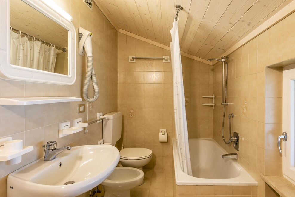 bathtub with integrated shower, bath, toilet, running hot/cold water, no. of toilets: 1, bidet, no. of bathrooms: 1