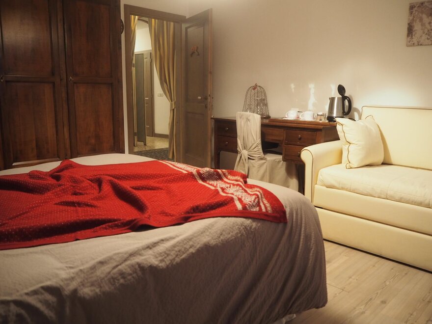 The "Tramonto" room is the smallest, facing south of the house, suitable for couples for romantic weekends or for two friends (beds can be divided). The bathroom has a large shower and a hairdryer.