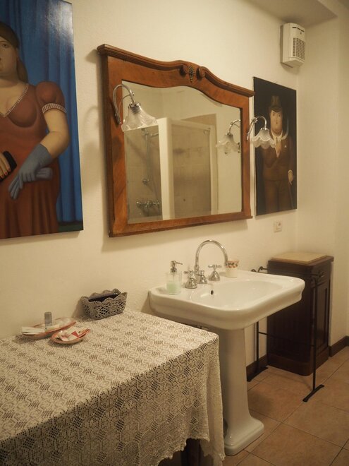 The "Radura" room is located north of the house, suitable for families and is occupied by a double bed and a sofa bed which can become a bunk bed (2 places) if necessary. Very large room. The bathroom has a large window with a large shower and a hairdryer.