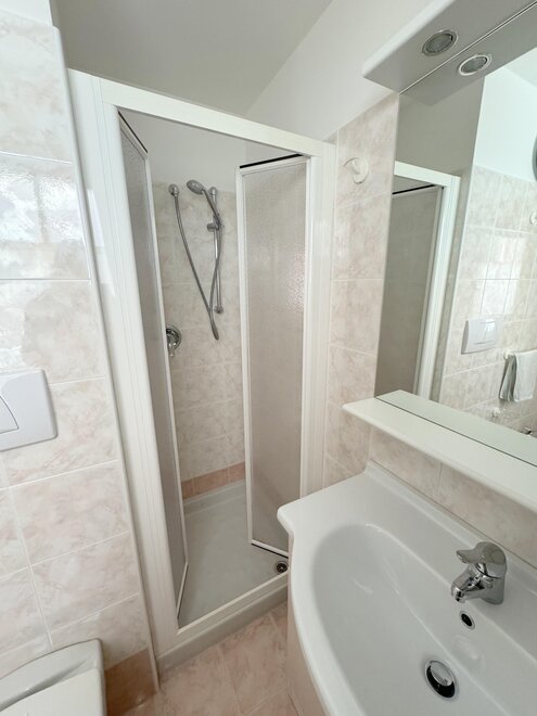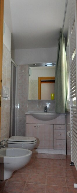Apartment on the first floor, has one double bedroom, one bedroom with two single beds, two bathrooms with shower, washing machine, living area with equipped kitchenette, dishwasher, microwave and kettle, free WI-FI, TV-SAT with some foreign channels, balcony.