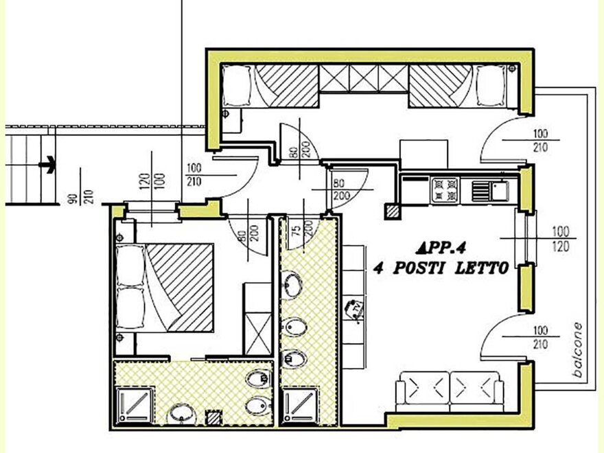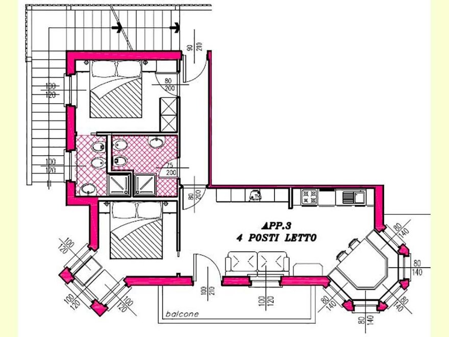 Apartment on the second floor, has one double bedroom, one bedroom with two single beds, two bathrooms with shower, washing machine, living area with equipped kitchenette, dishwasher, microwave and kettle, free WI-FI, TV-SAT with some foreign channels, balcony.