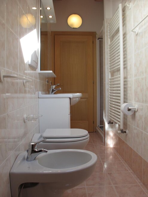 bidet, toilet, shower, running hot/cold water