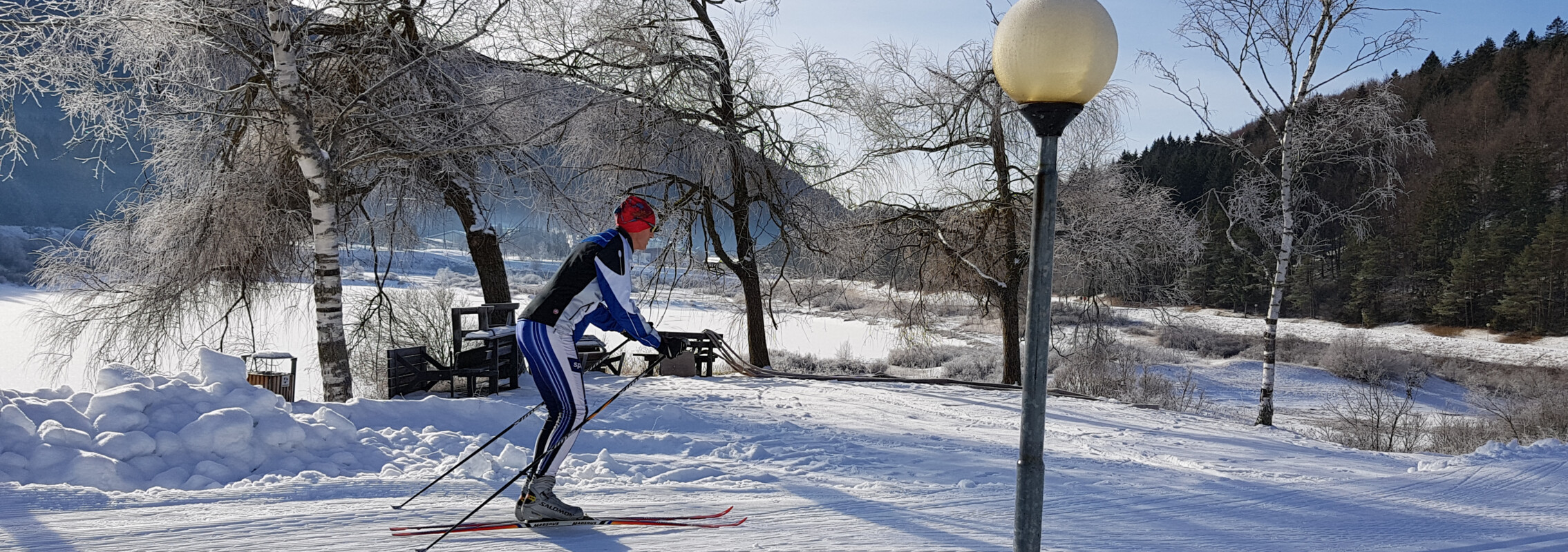Cross-country skiing enthusiasts can ski here through alternating forests and open spaces. There is also a ski camp, playground and all the necessary facilities, such as changing rooms and showers, as well as ski hire shops, a bar and a large parking area. The sports complex also houses meeting facilities, an ice rink, swimming pools and the ACQUAIN wellness centre.