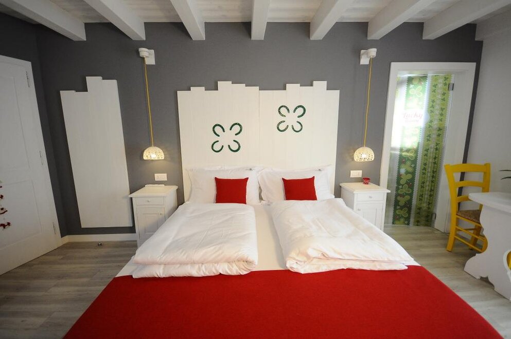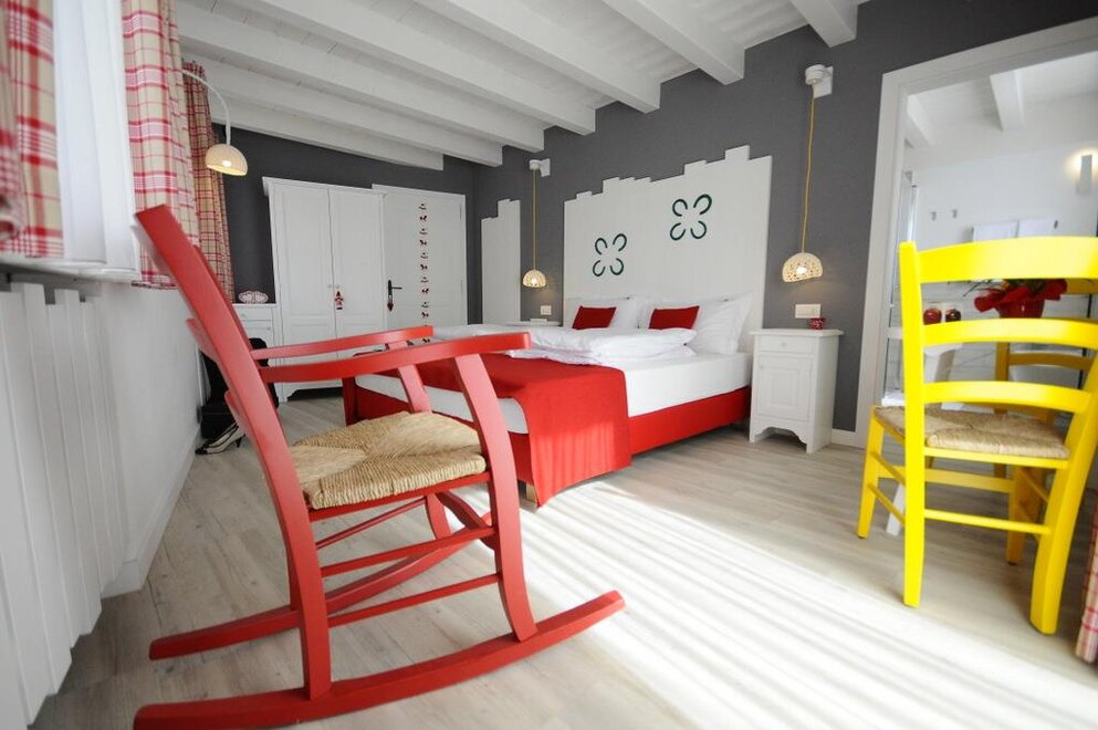 The horse-shoe, the colors of the rodeo of the Far West, the joy and the waiting for that which may happen...the Lucky Room is a concentration of positive energy...it will be impossible not to feel good cheer! With an innovative and much-sought design, it will be only the first step in living your worry-free vacation in nature! Double room with private bathroom with shower, minibar and balcony.