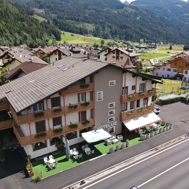 Situated in the sunny plain of Predazzo, very near to the Ski Center Latemar and Alpe Lusia areas, Hotel Liz offers its guests a quiet and relaxing holiday. Cooking is supervised directly by the owners.Large private car park, garage. Private car and coach park. Ski and ski-boots depot, playground, lift, ping pong. Each rooms with private bath,Wc,telephone,80% with balcony.