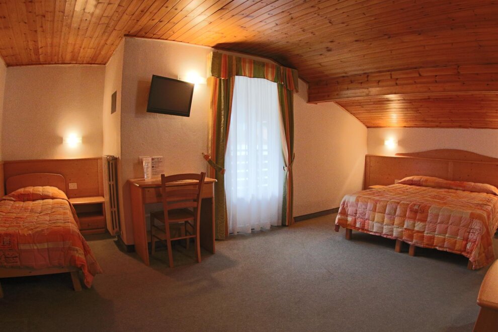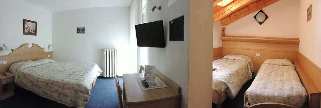 Comfortable triple beds room with private bathroom, decorated in mountain style with wood and carpeted or parquet floor. There is an LCD TV, telephone and safe. Most of our rooms have balconies overlooking the mountains or our private garden. WI-FI internet available
