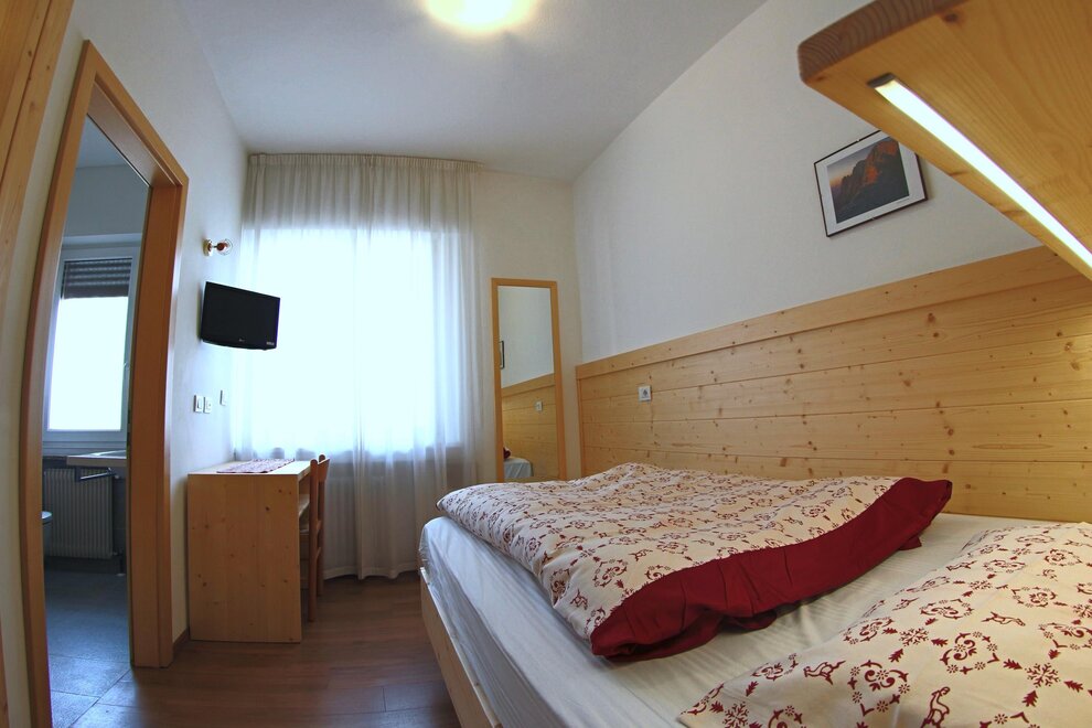Comfortable double or twin room with private bathroom decorated in mountain style with wood and carpeted or parquet floor. There is an LCD TV, telephone and safe. Most of our rooms have balconies overlooking the mountains or our garden. WI-FI available