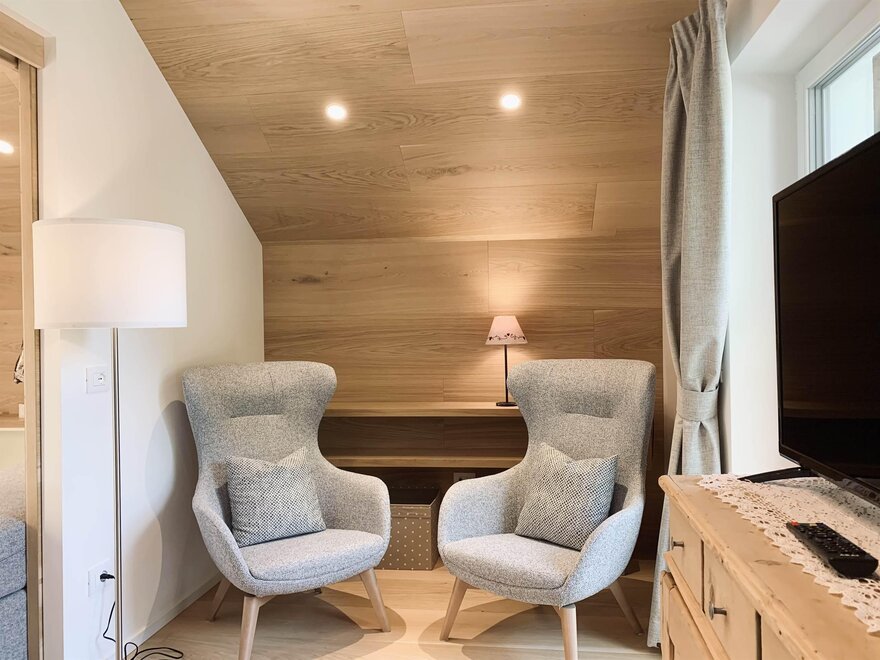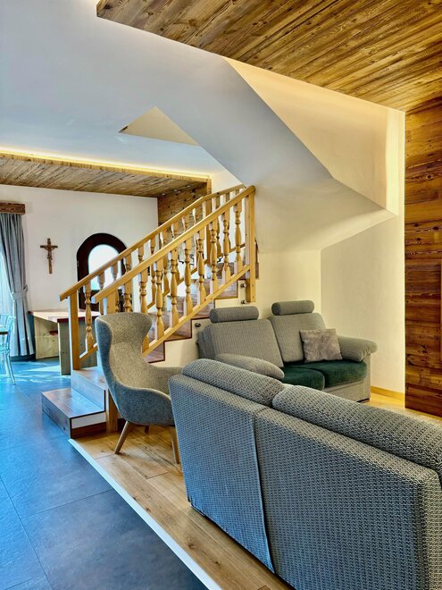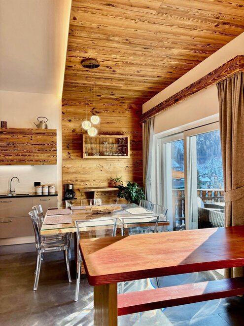 The apartments Fratelli Prinoth are located in Campitello di Fassa in a very quiet and sunny position. The house is an ideal starting point for many breathtaking excursions in the middle of wonderful natural landscapes. The apartments satisfy the needs of every guest thanks to both its amenities and surface: they offer space for up to eight people and are equipped with a living room, a kitchen and a bathroom. Guests will find at their disposal a washing machine, dishwasher, TV Sat/ Netflix, car parking. The apartments are structured in modern style, maintaining the rustic style of the Alps.